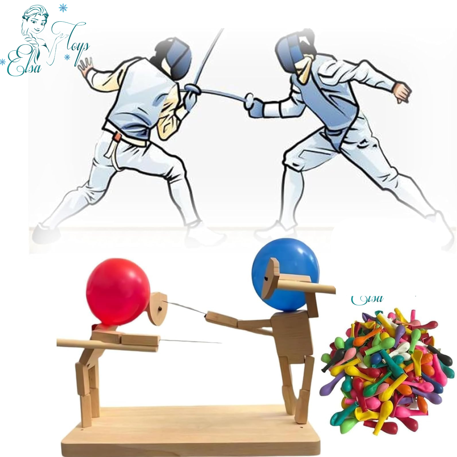 The game "Wooden fencing puppets" is a fast and exciting two-player game in which players use wooden puppets and swords and shields to try to burst their opponent's balloon and win. These wooden dolls are made using solid wood and metal wires and require manual assembly, which can be a fun hands-on activity for children and their parents.