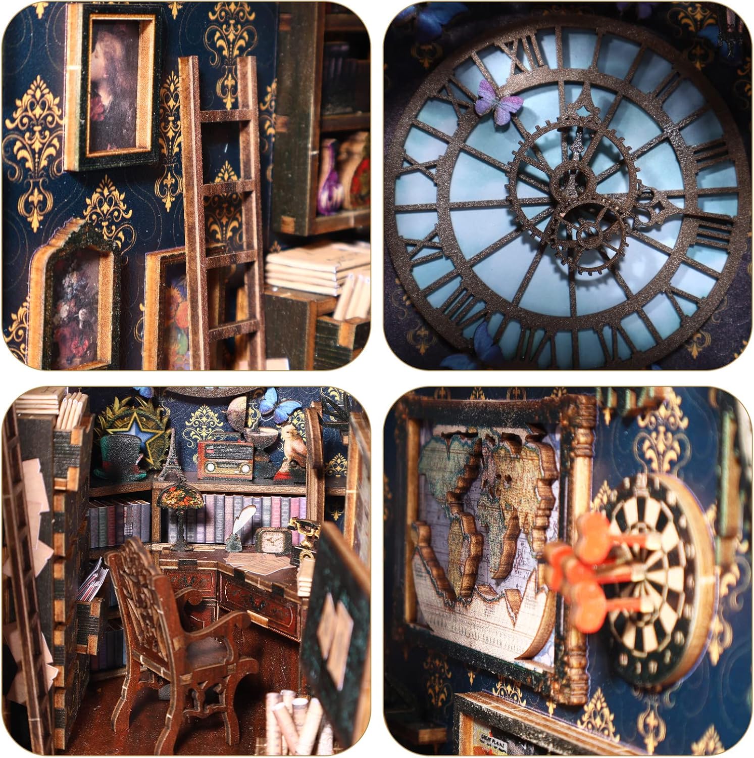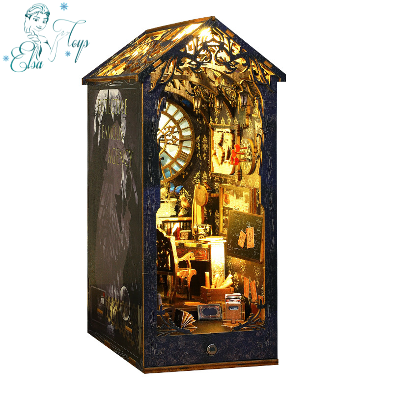 This product is a detective-themed DIY bookcase making kit, suitable for decorating a library or desk, with a fun and challenging experience for ages 15 and up. wooden material.