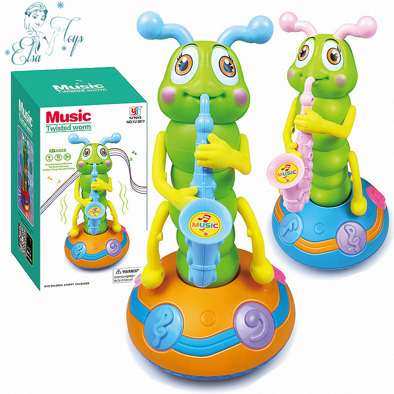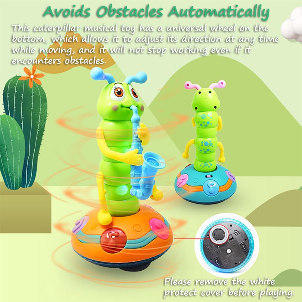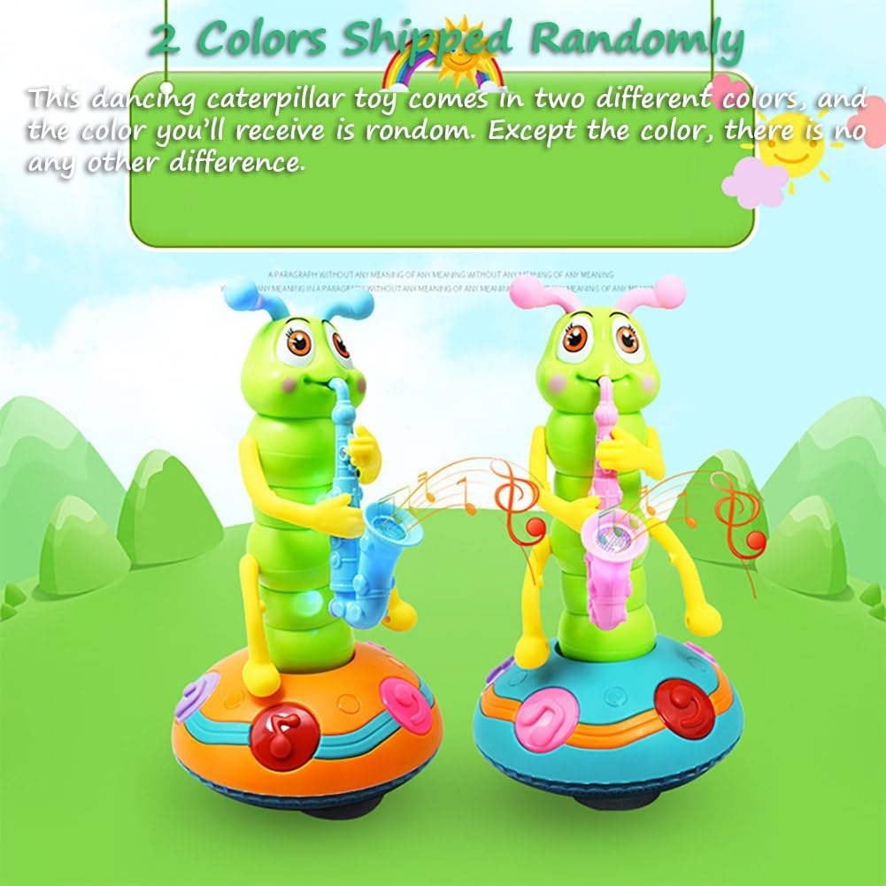 This dancing silkworm toy entertains children by playing happy music, funny dance and LED lights, and by having a universal wheel, it avoids collision with obstacles and helps to develop motor skills of babies. Random color